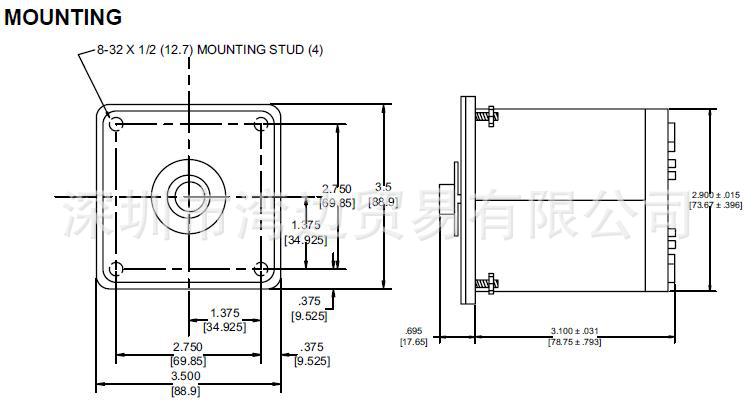 exposed dial. The heavy duty front dial plate has 4 mounting studs for