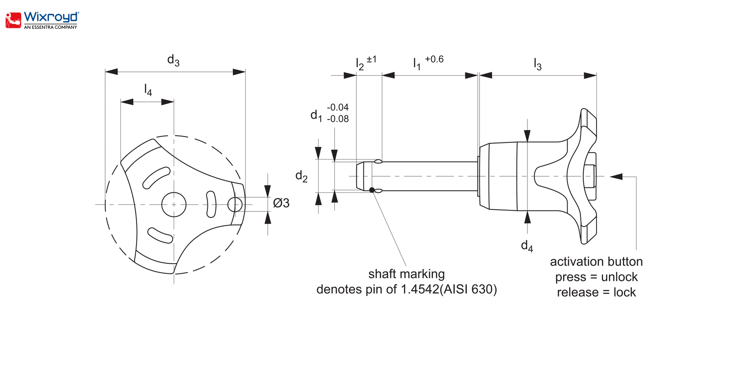 英国Wixroyd 33060.BK球锁销 - 单作用 - 黑色塑料手柄33060.W0814