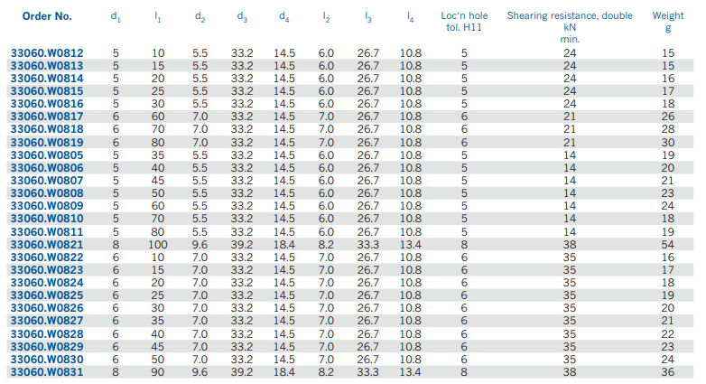 销:不锈钢1,4542 (AISI 630),沉淀硬化,喷丸处理。(在轴端标记以表示1.4542材料)。